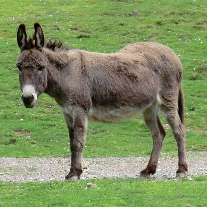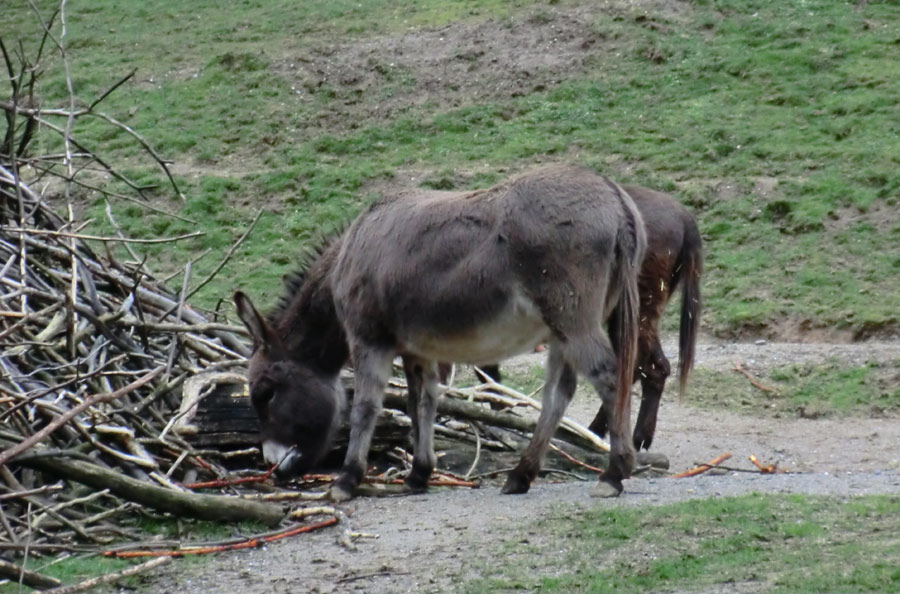 Hausesel im Zoologischen Garten Wuppertal im April 2014.