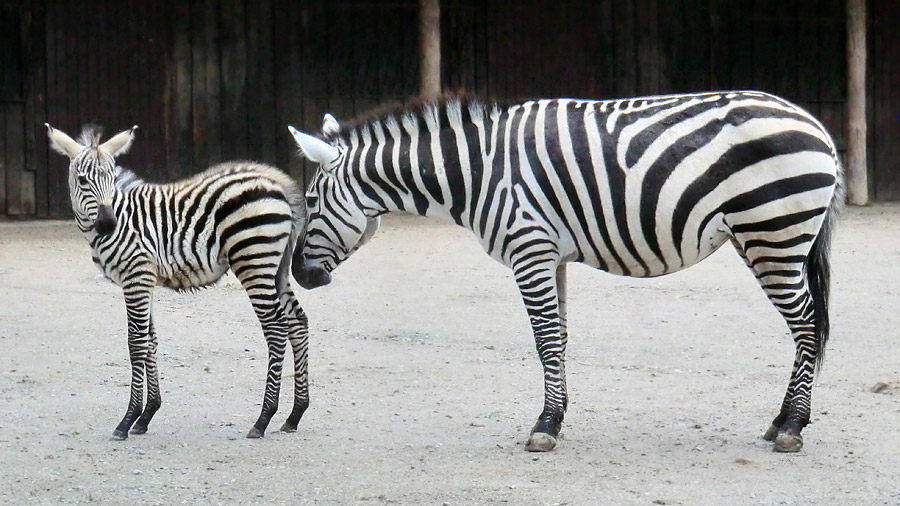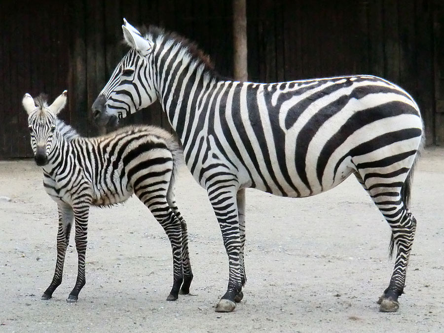 Böhmzebra mit Jungtier im Zoologischen Garten Wuppertal im Dezember 2013.