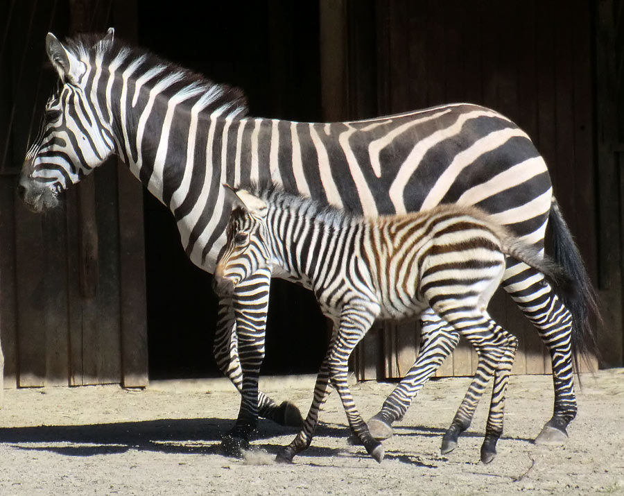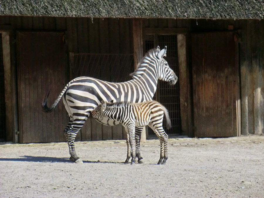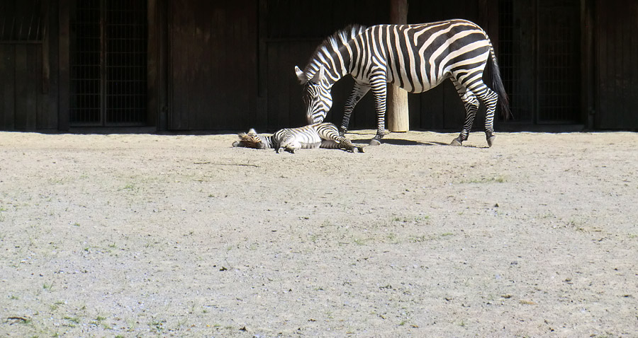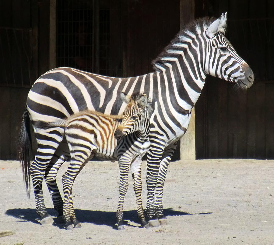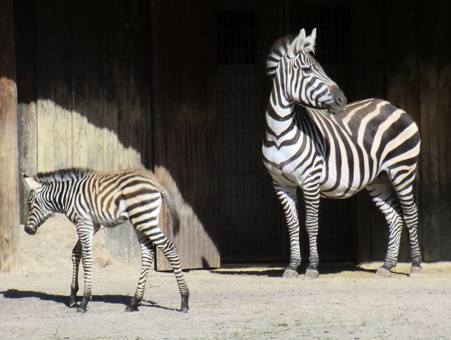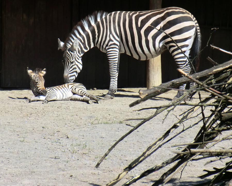 Eine Zebrastute hat am 10. Juni 2014 ein Jungtier zur Welt gebracht. Der Nachwuchs kann von den Zoogästen schon auf der Afrika-Anlage bewundert werden.