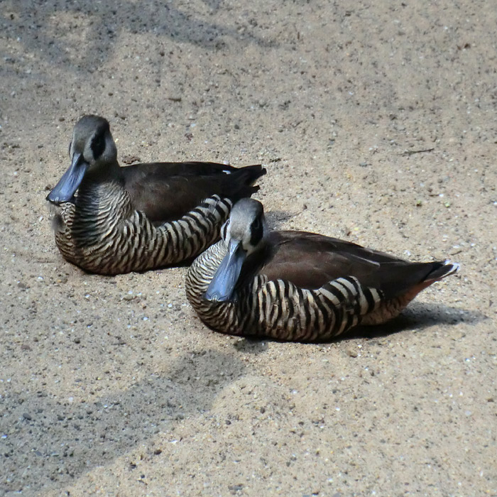 Spatelschnabelenten (Malacorhynchus membranaceus) im Wuppertaler Zoo im Juli 2012.
