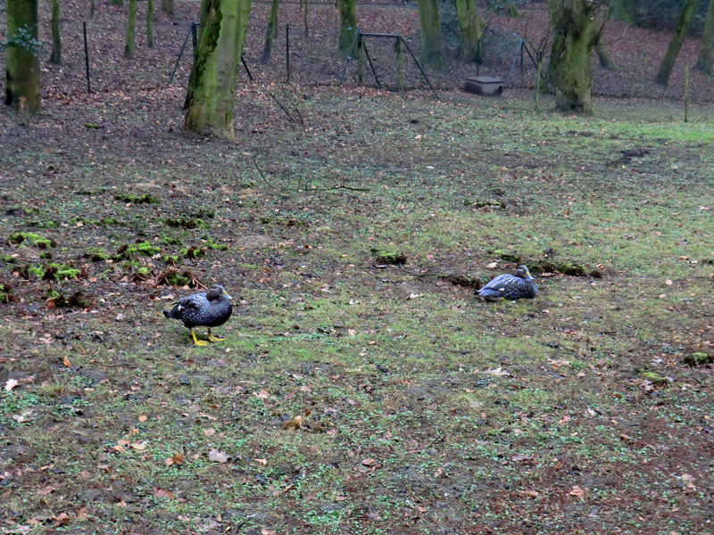Langflügel-Dampfschiffenten im Wuppertaler Zoo im März 2012.