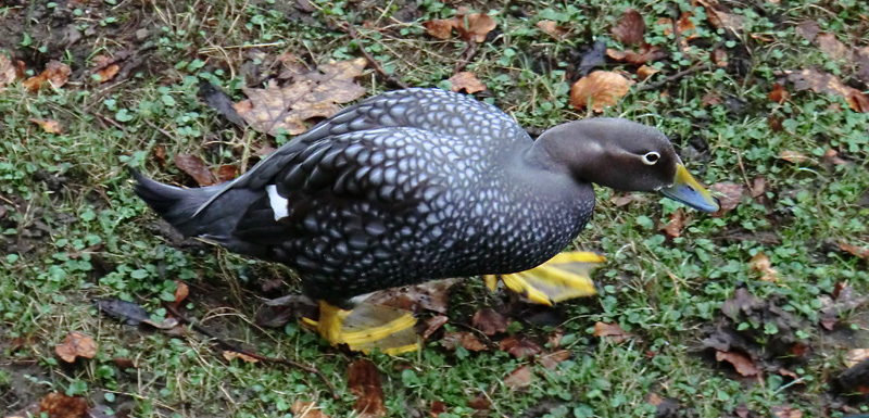 Langflügel-Dampfschiffente (Tachyeres patachonicus) im Wuppertaler Zoo im März 2012
