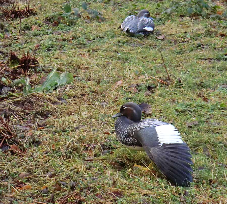 Langflügel-Dampfschiffenten im Wuppertaler Zoo im Januar 2014.