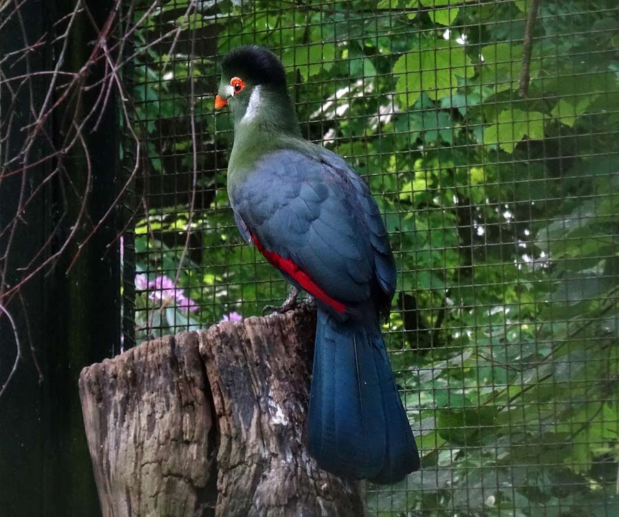 Weißohrturako (Tauraco leucotis) im Wuppertaler Zoo im Mai 2015.
