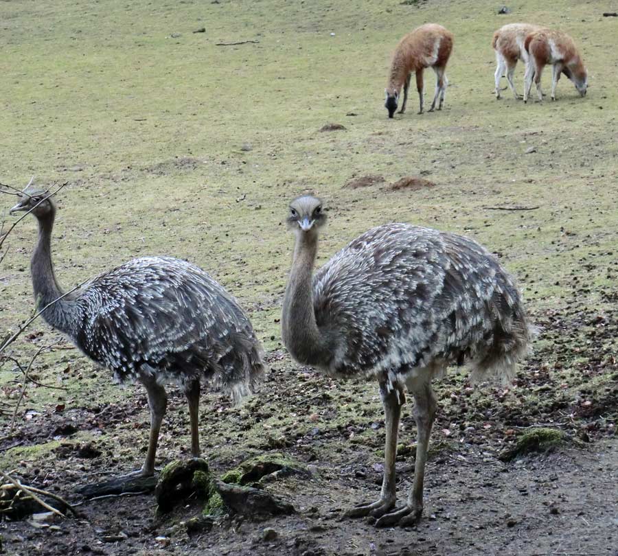 Guanakos und Darwin-Nandus im Wuppertaler Zoo im Februar 2012.