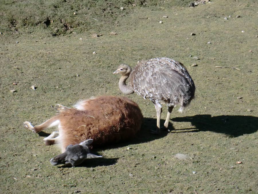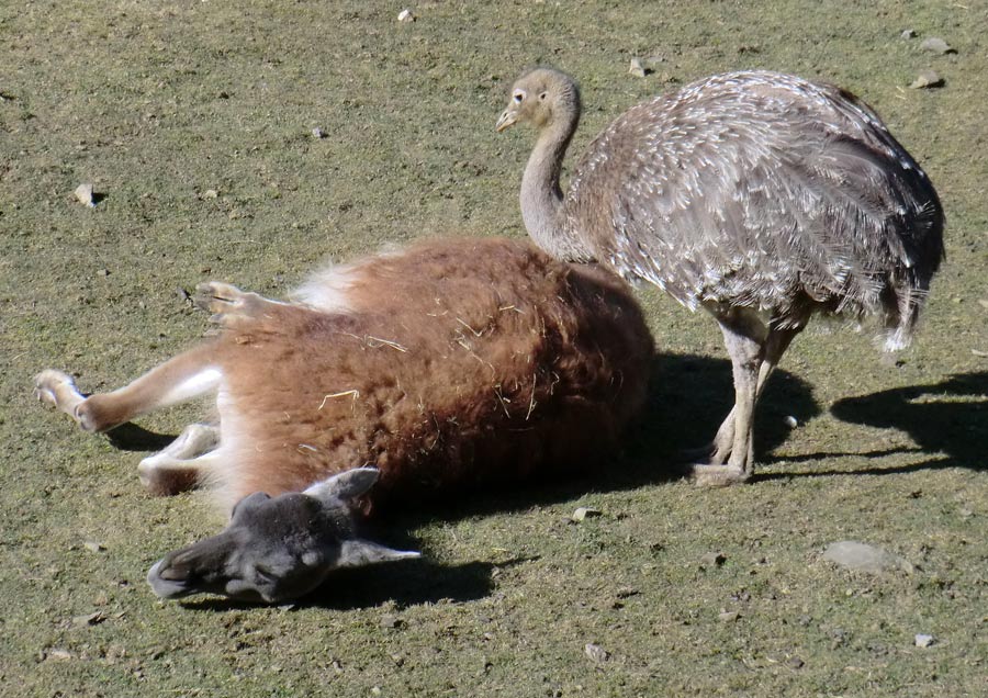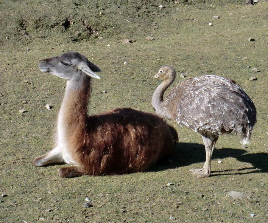 Guanako und Darwin-Nandu im Wuppertaler Zoo im April 2013.