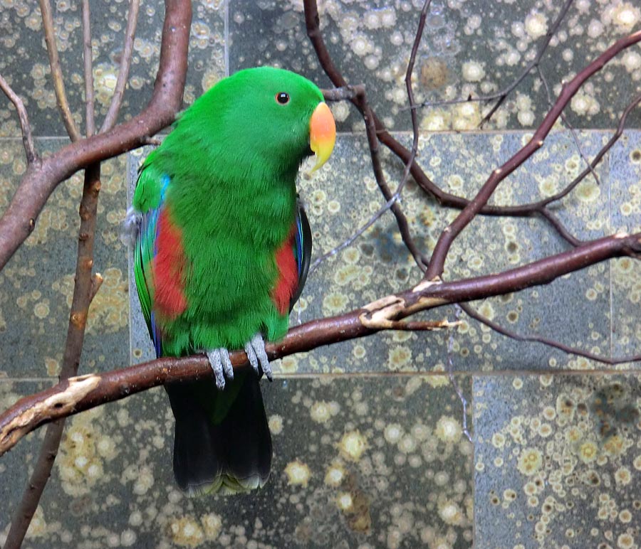 Weiblicher Neuguinea-Edelpapagei (Eclectus roratus polychloros) im Wuppertaler Zoo im November 2012.