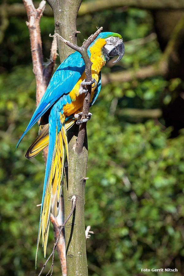 Gelbbrustara (Ara ararauna) im Wuppertaler Zoo im April 2016.