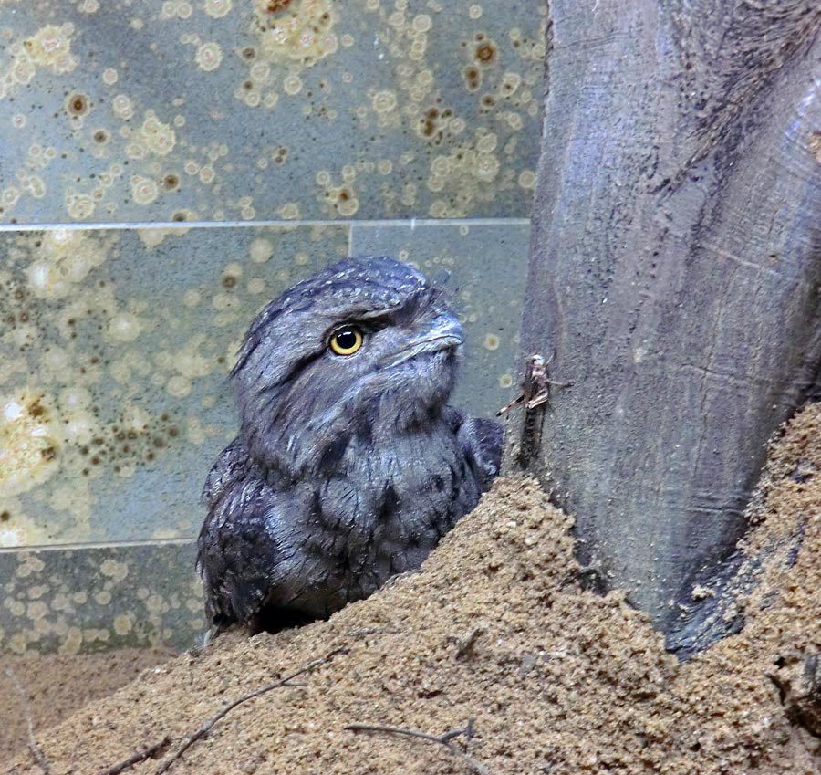 Eulenschwalm (Podargus strigoides) im Wuppertaler Zoo im August 2012.