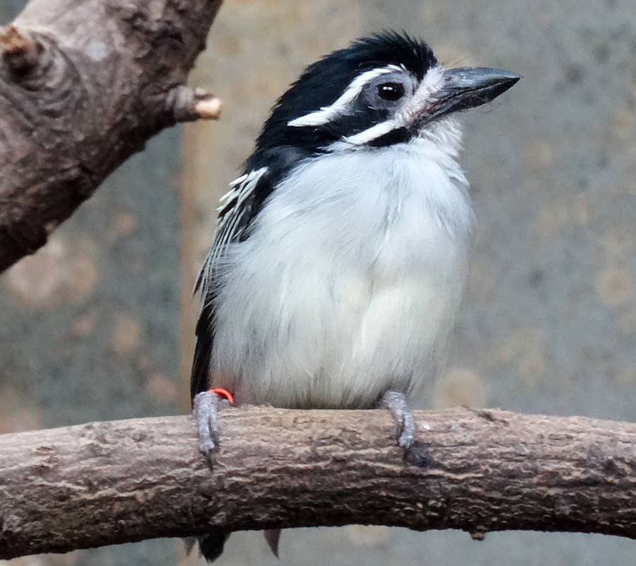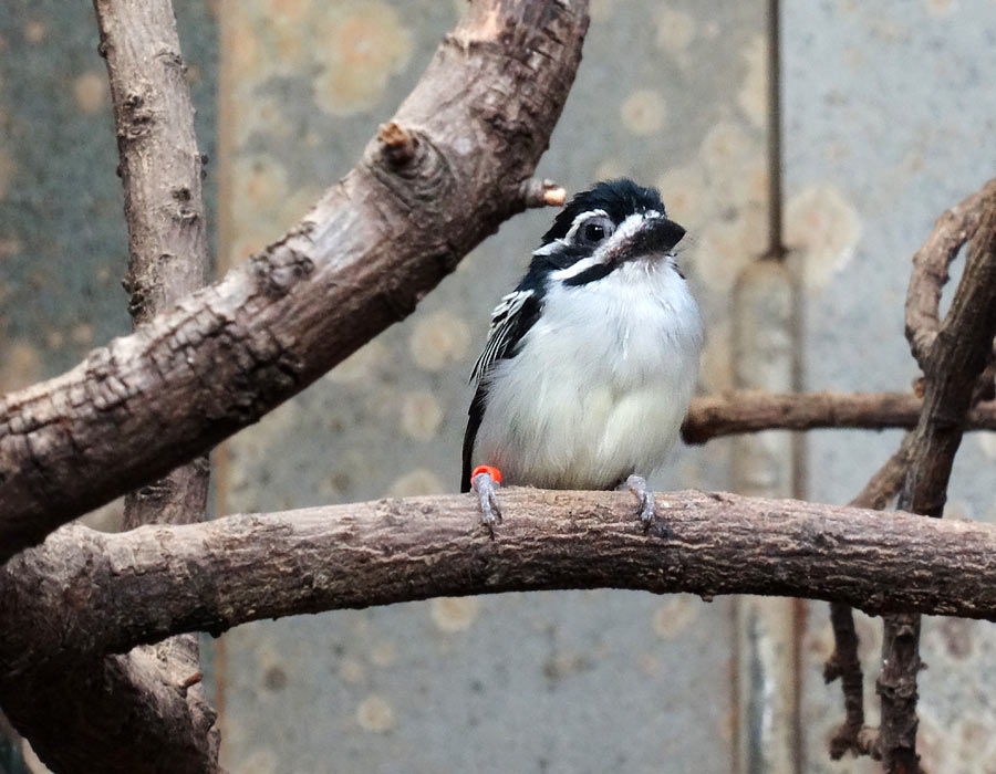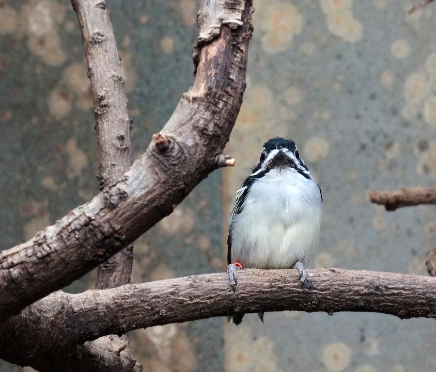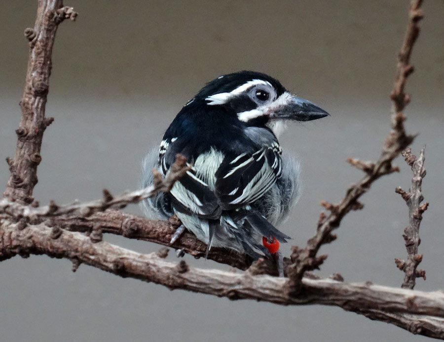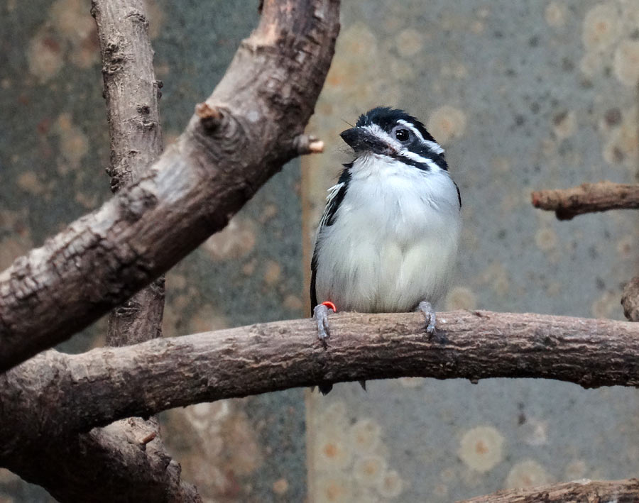 Goldbürzel-Bartvogel (Pogoniulus bilineatus) im Wuppertaler Zoo im Dezember 2015.