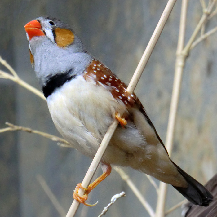 Timor-Zebrafink (Taeniopygia guttata guttata) im Wuppertaler Zoo im Februar 2012.