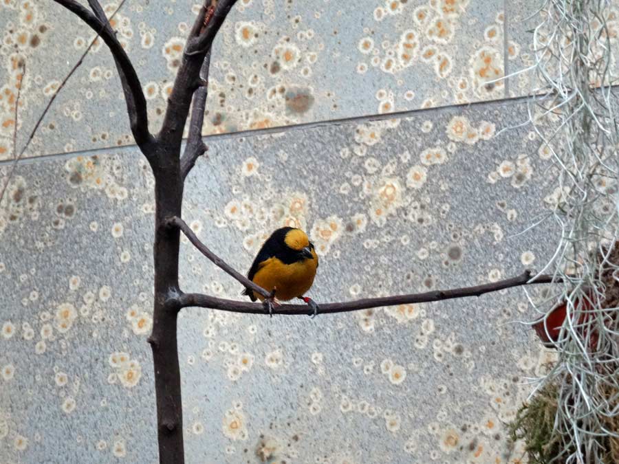Dickschnabelorganist (Euphonia laniirostris) Männchen im Wuppertaler Zoo im Mai 2015.