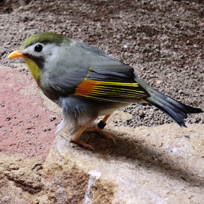 China-Nachtigall (Leiothrix lutea) im Wuppertaler Zoo im März 2012.