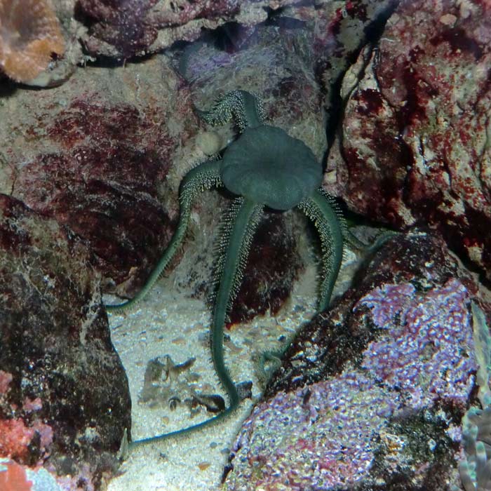 Olivgrüner Schlangenstern (Ophiarachna incrassata) im Wuppertaler Zoo im Juli 2014.